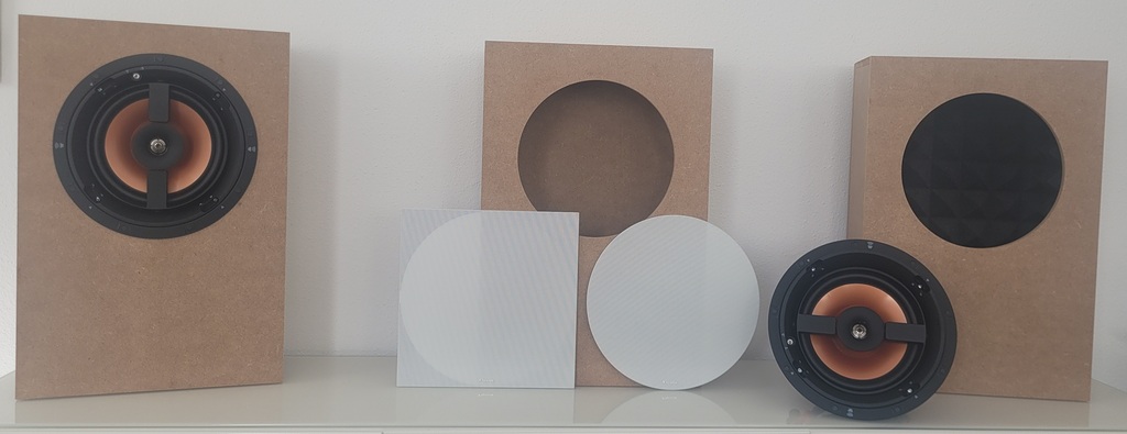 Para los altavoces empotrados en el sistema de cine en casa utilizamos cajas especializadas de MDF con un grosor de pared de 16 mm y un relleno interior de panel absorbente acústico de espuma autoextinguible.