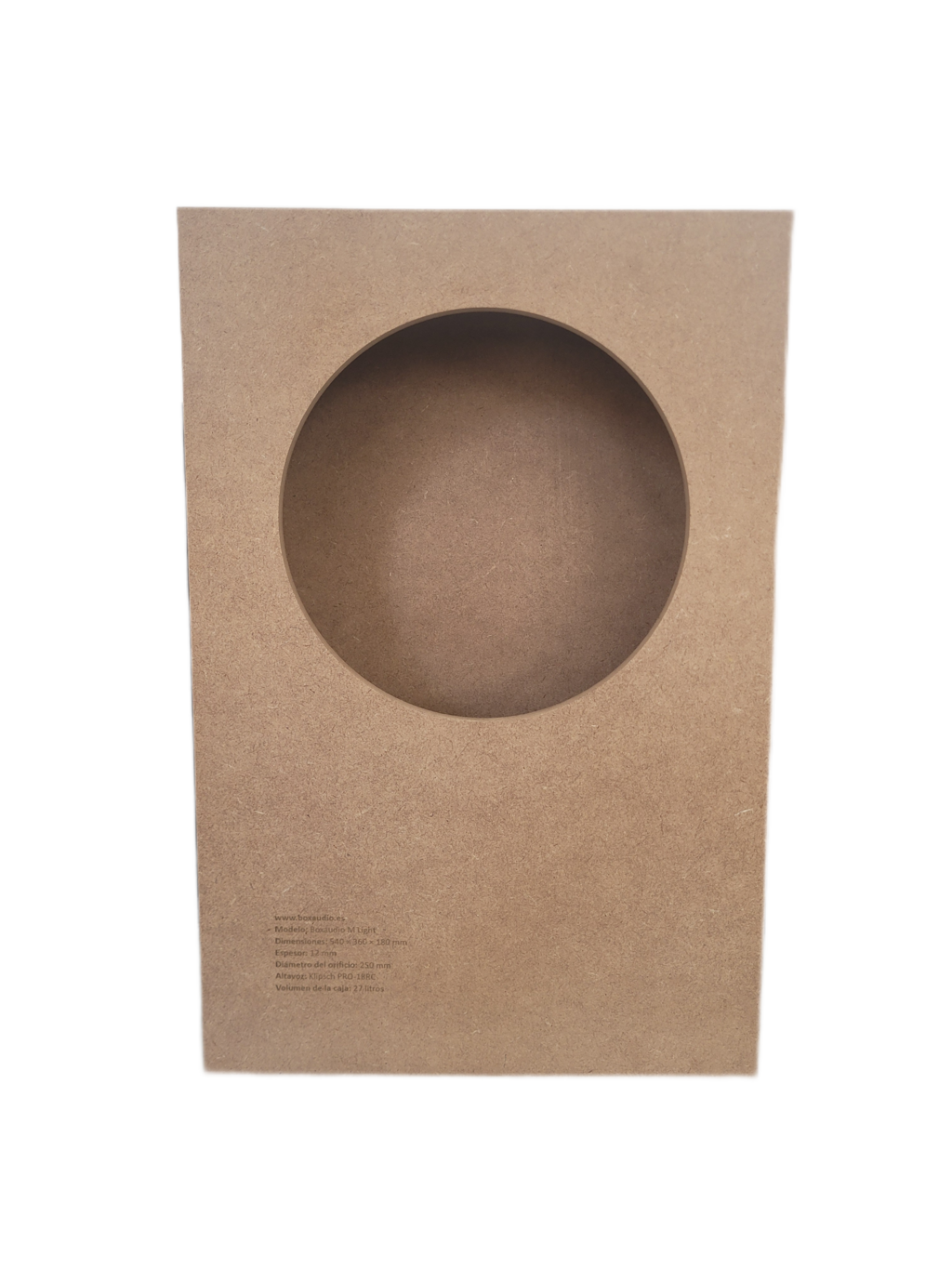 Para empezar, la caja se diseña en función del modelo del sistema acústico y de la estructura del techo del cliente. Lo primero que es necesario saber para realizar el pedido es para qué modelo concreto de altavoz se va a instalar la caja. Según las recomendaciones del fabricante (y, en caso de no existir, a partir de las dimensiones y parámetros del altavoz de medios/graves), determinamos el volumen necesario de la caja acústica y el diámetro del orificio de montaje (o las medidas del cuadrado/rectángulo en el caso de modelos con esa forma). A continuación, teniendo en cuenta sus indicaciones sobre la profundidad del techo (que normalmente es el factor limitante del volumen de la caja), calculamos las dimensiones completas de la caja acústica: altura, anchura y profundidad. Tras enviarle el plano con las dimensiones para su aprobación, procedemos a la fabricación. En un plazo muy breve (5–7 días) fabricamos la caja acústica en MDF del grosor seleccionado (según el modelo), la ensamblamos con un adhesivo antivibratorio especializado y la revestimos internamente con guata de poliuretano. De forma opcional, usted puede adquirir un sistema de fijación antivibratoria especializado (escuadras metálicas con una capa de cinta adhesiva antivibratoria).